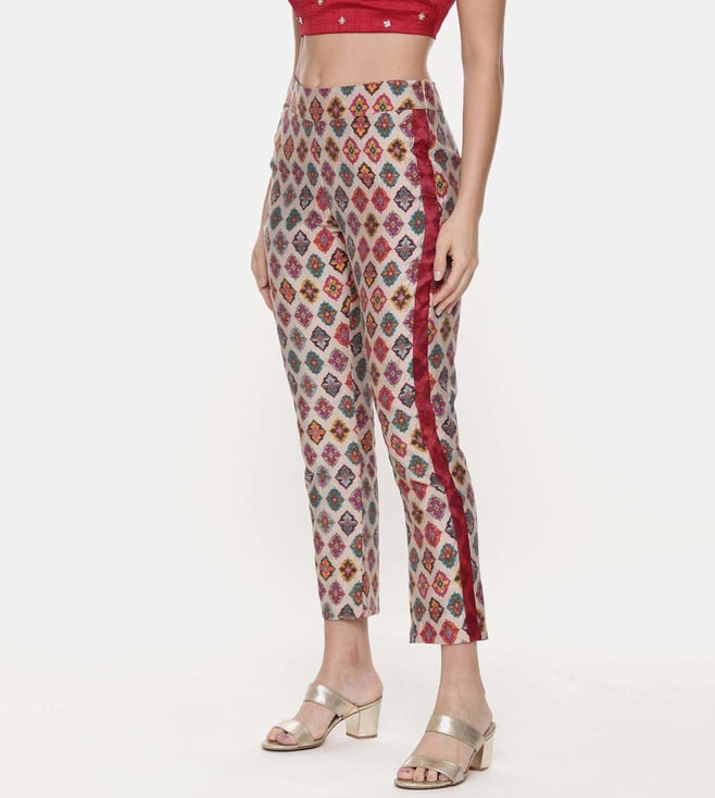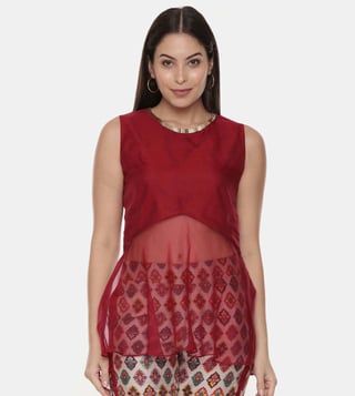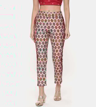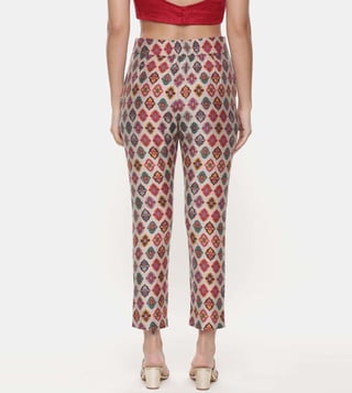 Elevate your appearance by wearing this top with pants. It has a classic 70's look. The top has been matched with printed tapered pants. Designed with care using silk/chanderi, it is soft on the skin and easy to maintain. Disclaimer: Product colour may slightly vary due to photographic lighting sources. Country Of Origin - India.