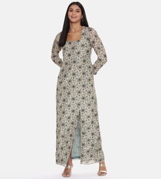 Maintain a cut from the rest by wearing this dress. This classic printed muslin dress is accentuated with side-cut detailing. Disclaimer: Product colour may slightly vary due to photographic lighting sources. Country of Origin - India.