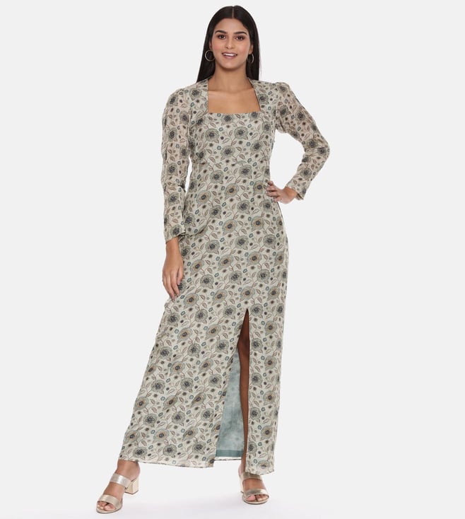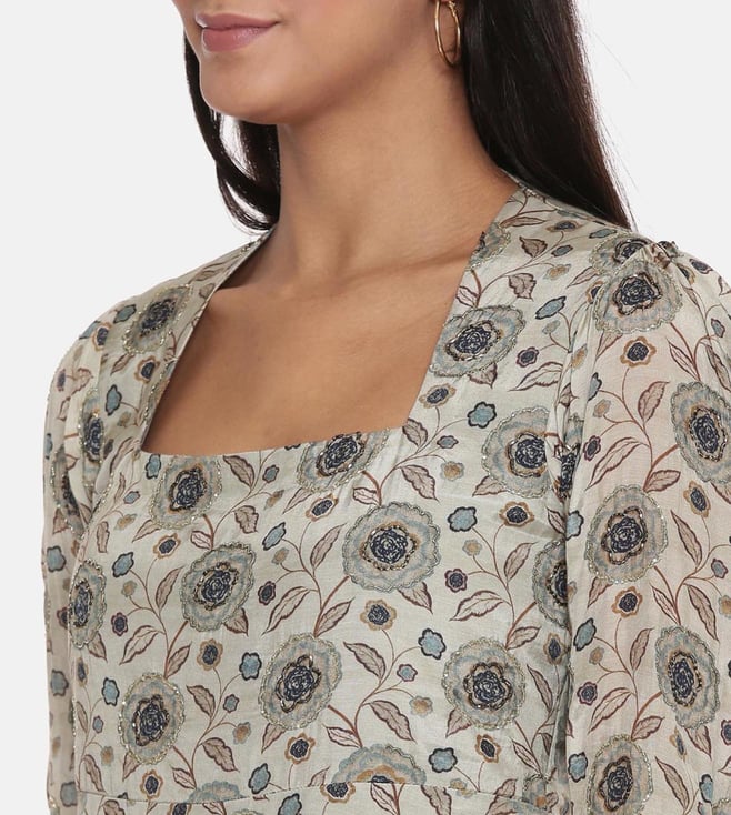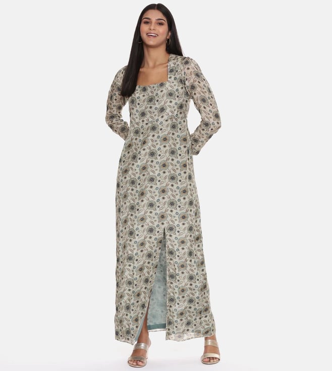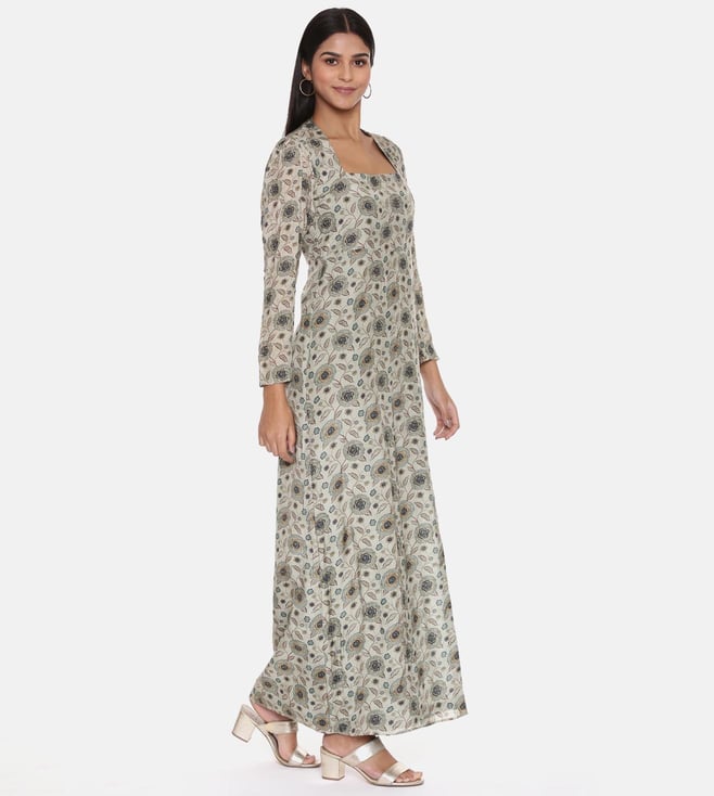 ASMI By Mayank Modi Silk Muslin Beige Green Dress