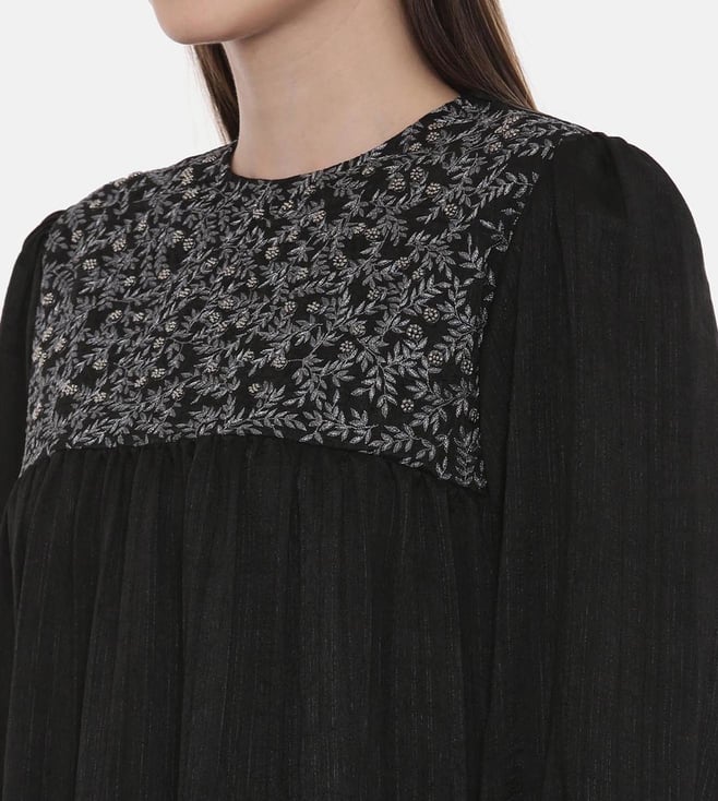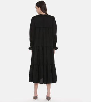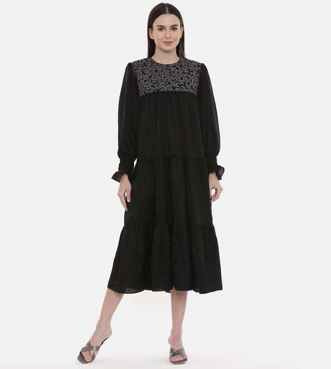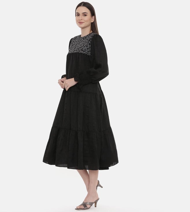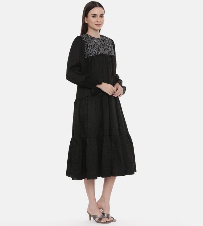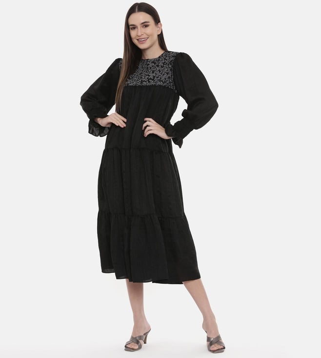 ASMI By Mayank Modi Silk Slub Black Embroidered Dress