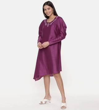 If simplicity is your cup of tea, this dress is a must-have. This classic dress is fashioned with puffed shoulder sleeves. Designed with care using silk/cotton slub, it is soft on the skin and easy to maintain. Disclaimer: Product colour may slightly vary due to photographic lighting sources. Country Of Origin - India.