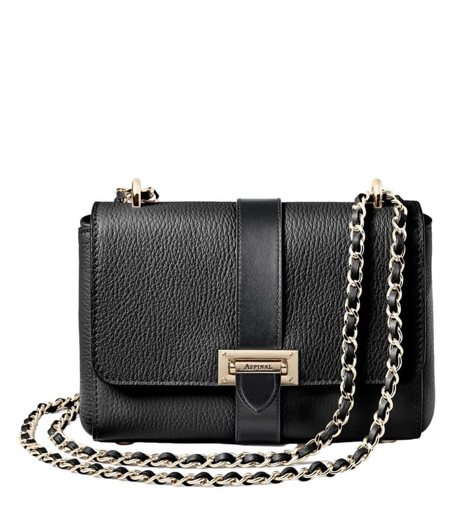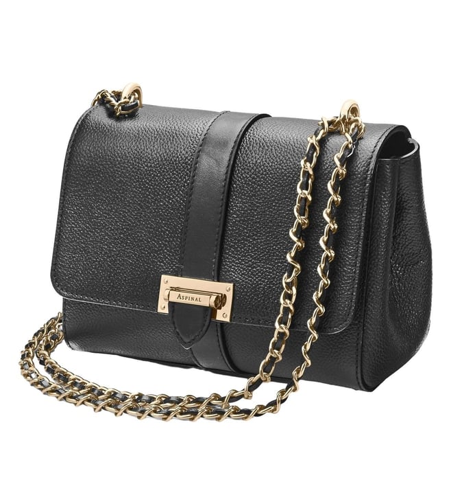Aspinal of London Black Lottie Textured Small Leather Shoulder Bag