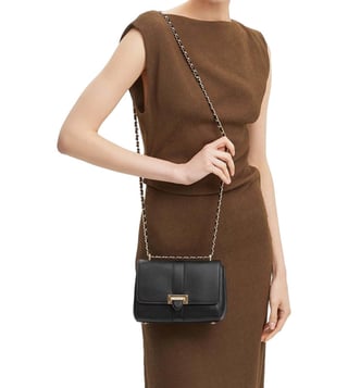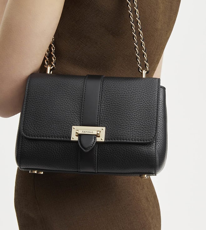Aspinal of London Black Lottie Textured Small Leather Shoulder Bag