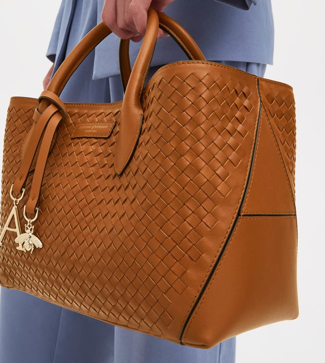 Simple and understated, our signature london leather tote bag is a versatile everyday companion. Handcrafted from the finest full-grain leather, its semi-structured shape is instantly recognisable with the two stitched 'a' panels to the sides, accented by our signature bee and 'a' charms and subtle branding on the front. Designed to last a lifetime, this must-have tote bag can be carried by the soft top handles or worn over one shoulder.