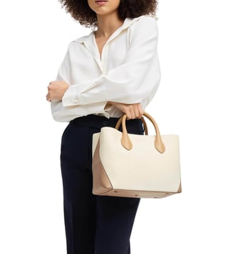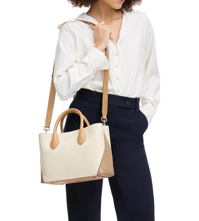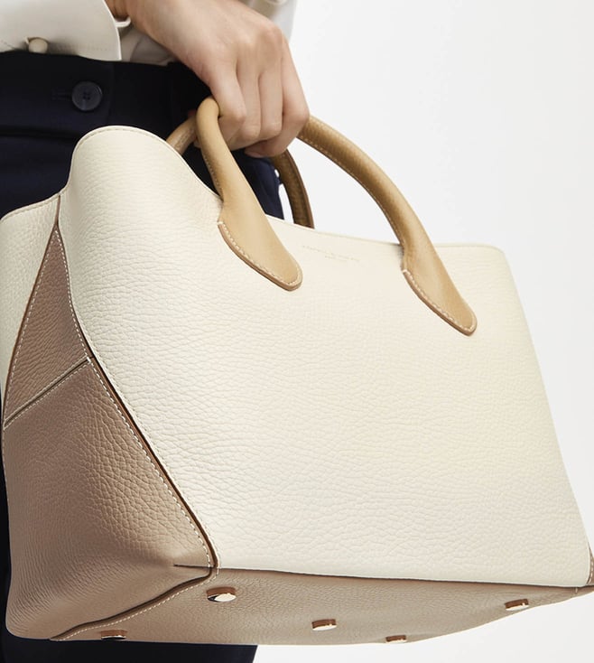 Aspinal of London Taupe & Ivory Textured Medium Leather Tote