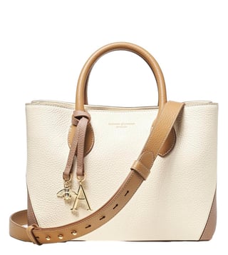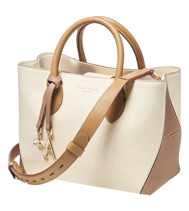 Aspinal of London Taupe & Ivory Textured Medium Leather Tote
