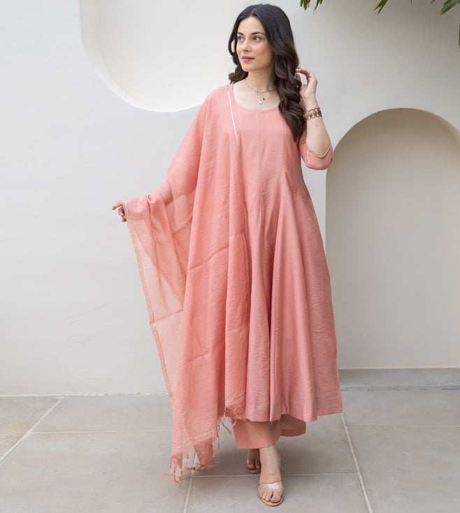 Light Pink Chanderi Regular Fit Anarkali Set