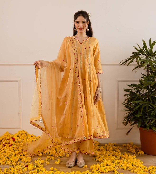 Mustard Yellow Chanderi Regular Fit Suit Set With Dupatta