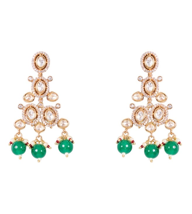 Traditional Gold Plated Kundan Green Beads Necklace & Earring Set for Women