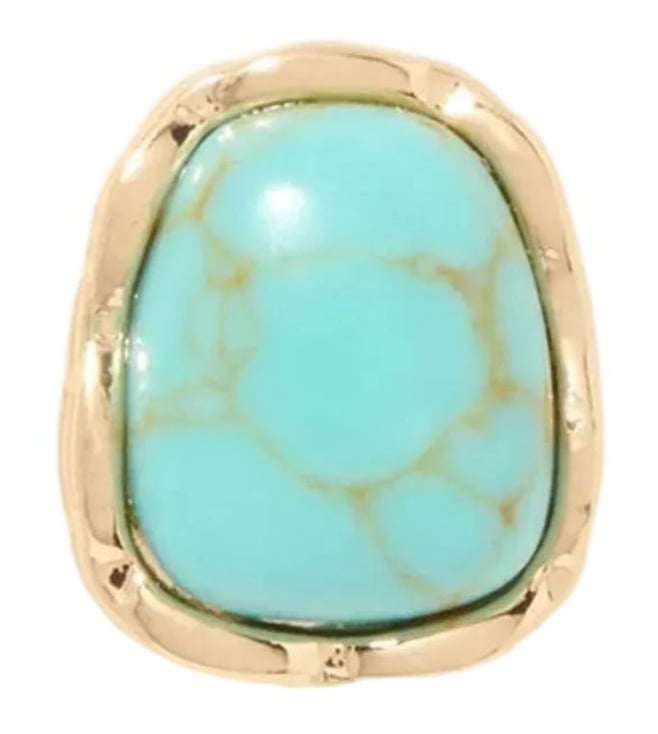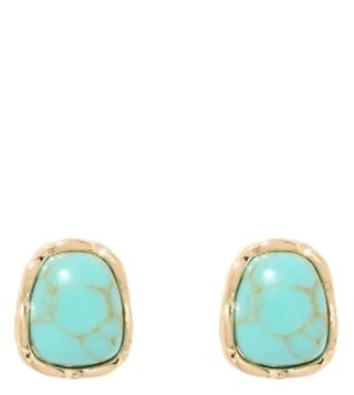Elevate your everyday look with the aurora stone earrings. Crafted with a stunning turquoise stone set in a luxurious gold tone frame, these earrings bring a pop of color and elegance to any outfit. The push back fastening ensures a secure fit for pierced ears, making them perfect for all day wear. Add a touch of timeless beauty to your style with these Forever New earrings.
