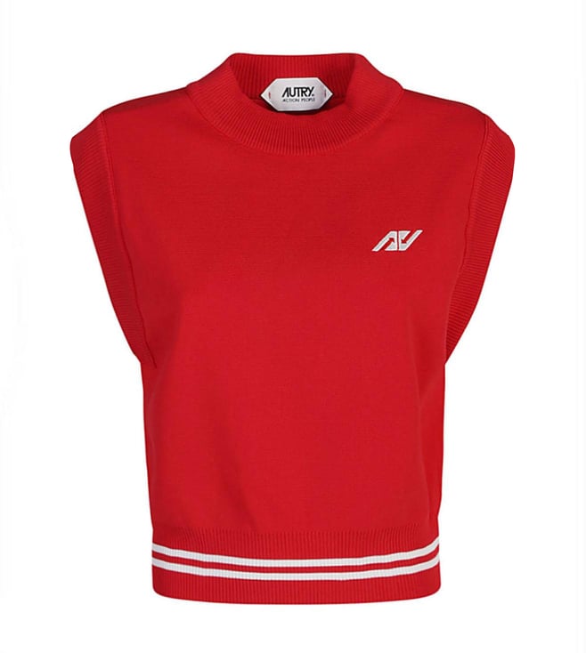 Red Round Neck Logo Vest Regular Fit Jacket