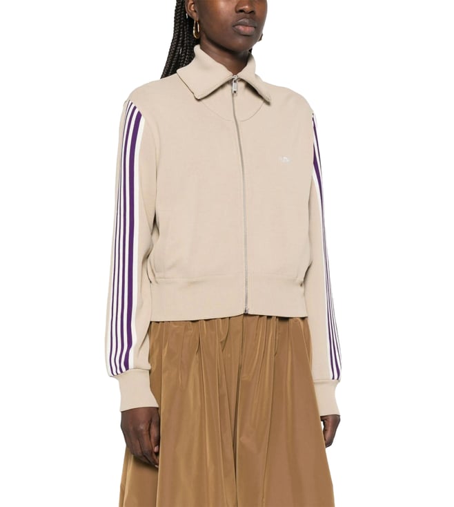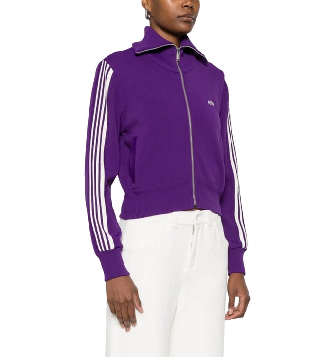 Dark Purple Knitted Zip-Up Striped Sweatshirt