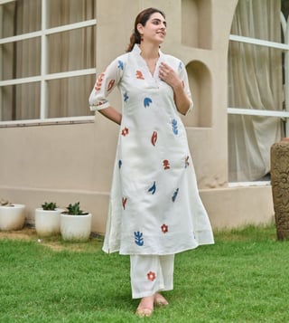 Experience Autumnlane Akiraswan White Cotton Regular Fit Kurta Pant Set comfort and style with the perfect for any occasion, Designed for women, this dress combines tradition and elegance. Disclaimer: All other items in the image are only for display purposes and will not be a part of the delivery content. Product colour may slightly vary due to photographic lighting sources. Country of Origin - India.