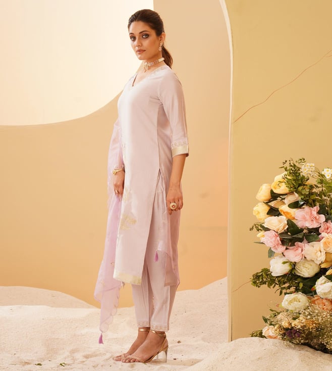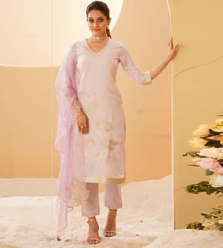 Get ready to make a fashion statement with Autumnlane's Bhavya Orchid Full Work Suit Set. This set, in the charming color of Purple, is crafted with soft and comfortable cotton fabric. Perfect for casual wear and features a 3/4th sleeve design. Get yours today!' Disclaimer: All other items in the image are only for display purposes and will not be a part of the delivery content. Product colour may slightly vary due to photographic lighting sources. Country of Origin - India.