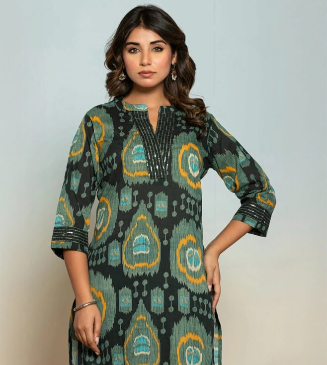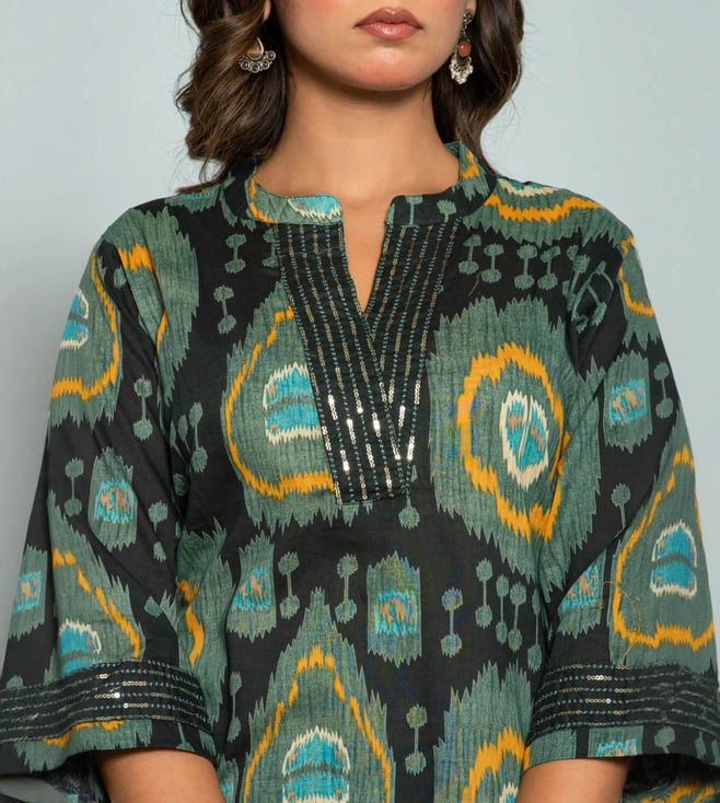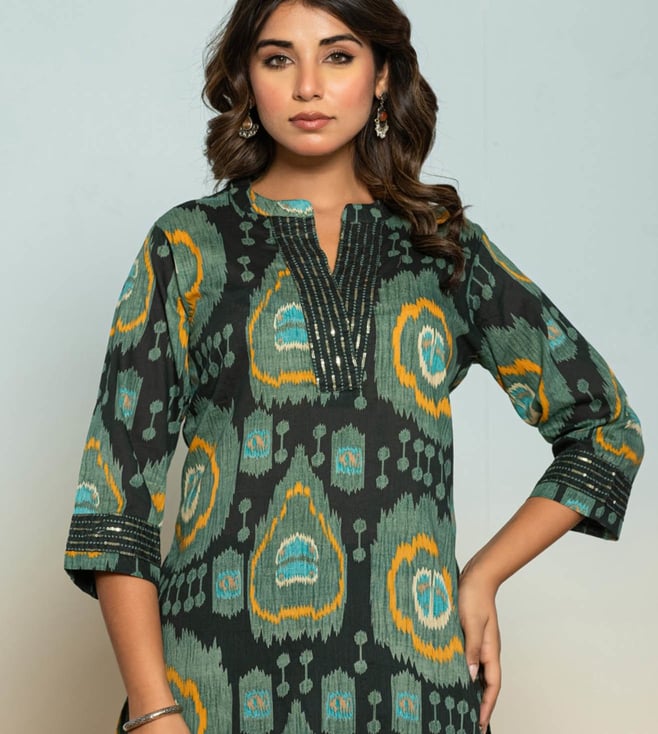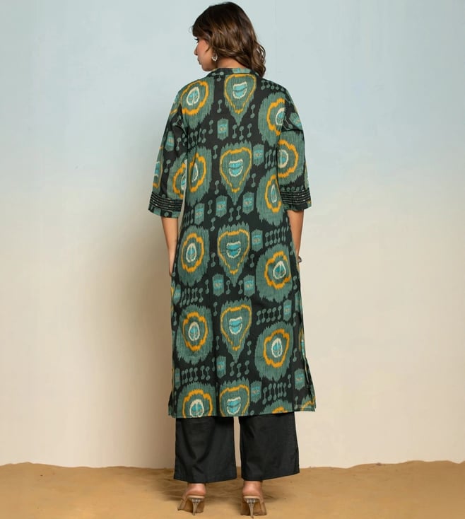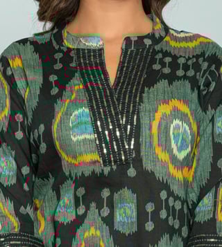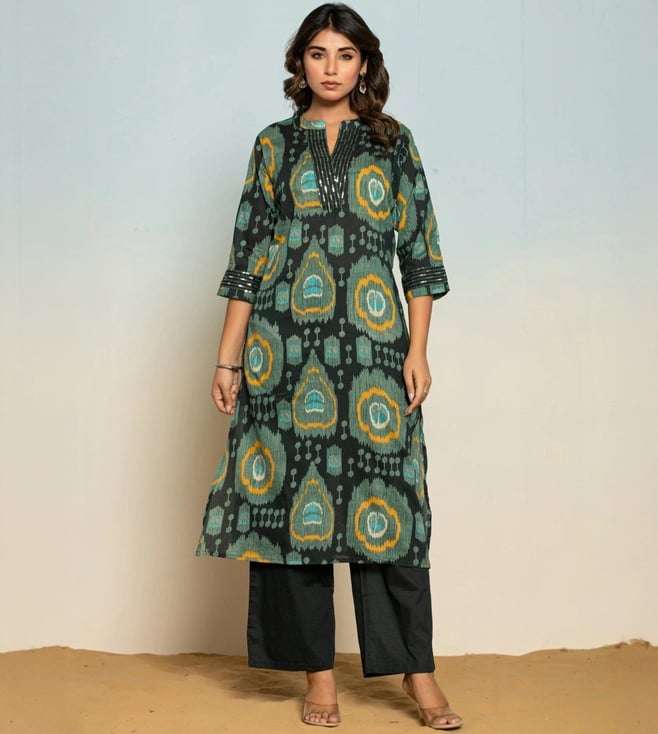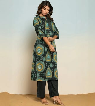 Autumnlane Black Hardik Kaitoke Ikat Printed Comfort Fit Kurta Pant Set