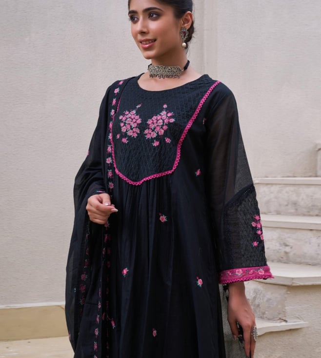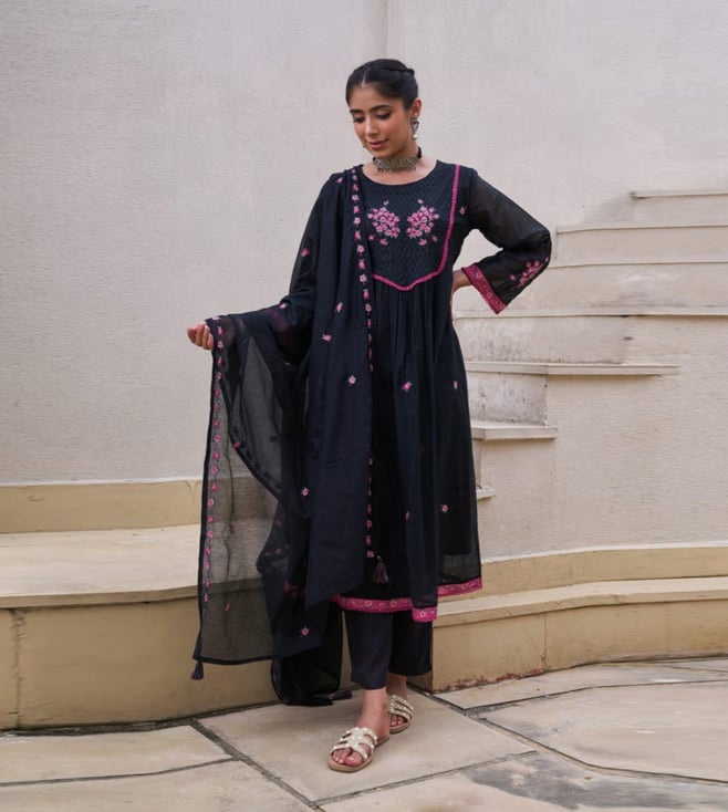 Autumnlane Black Sonpal Mist Embroidered Relaxed Fit Suit Set