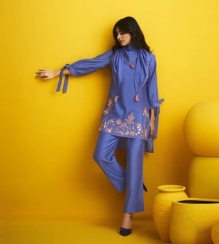Elevate your wardrobe with our Autumnlane blue arohi ink embroidered comfortable fit suit set. This stunning ensemble combines traditional elegance with modern comfort, featuring intricate embroidery and a comfortable fit that flatters every body type. Whether you are attending a special event or simply want to elevate your everyday look, this suit set is the perfect choice. Make a statement with this versatile and stylish outfit that will have you looking and feeling your best.