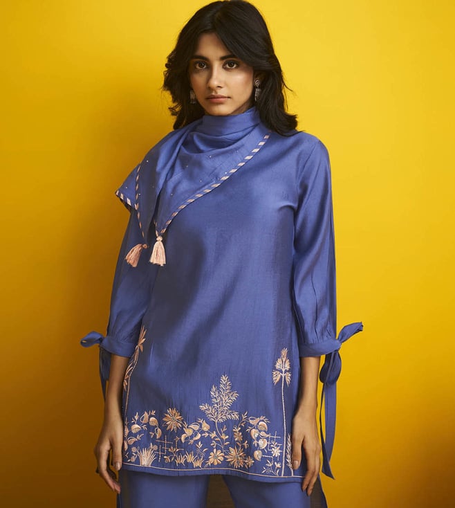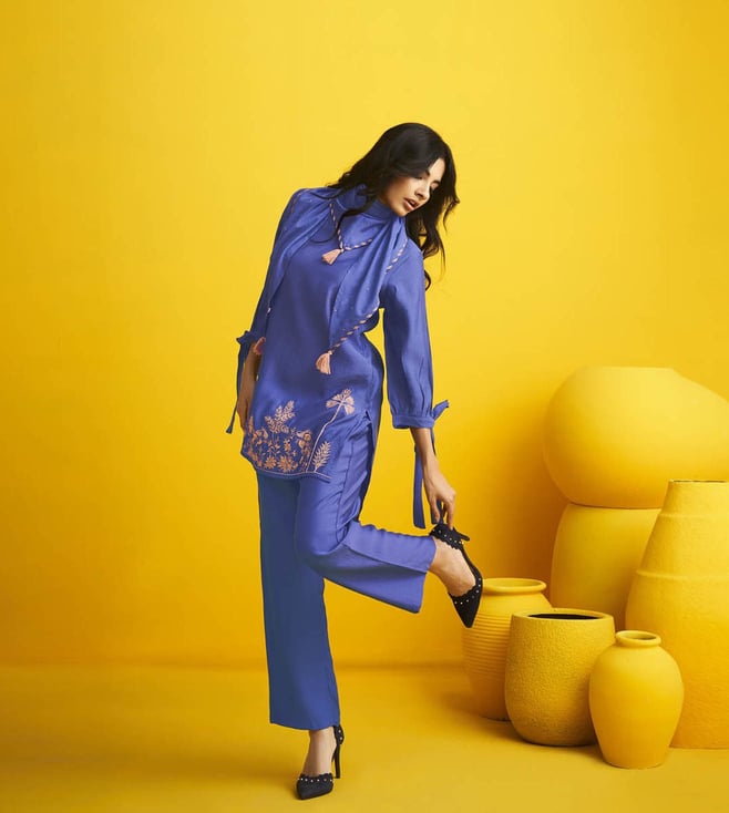Blue Arohi Ink Embroidered Comfortable Fit Suit Set