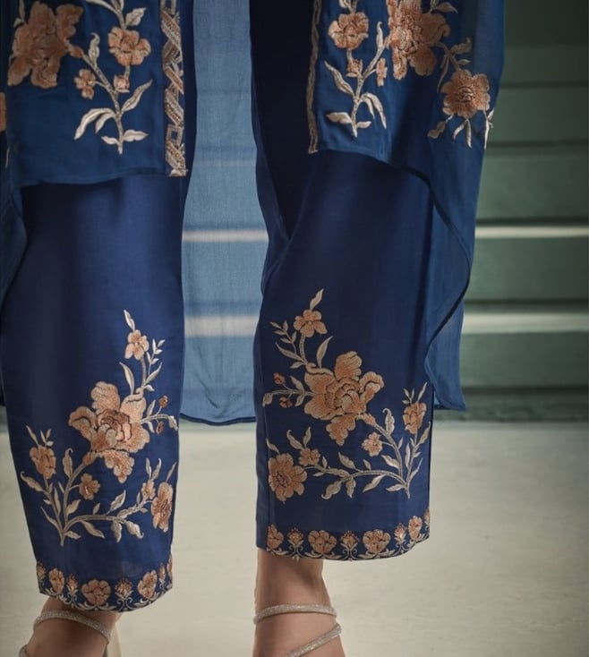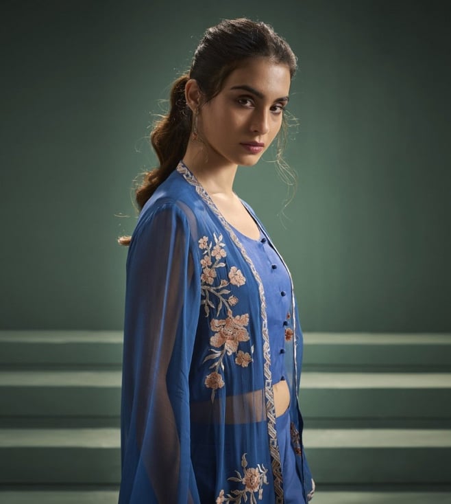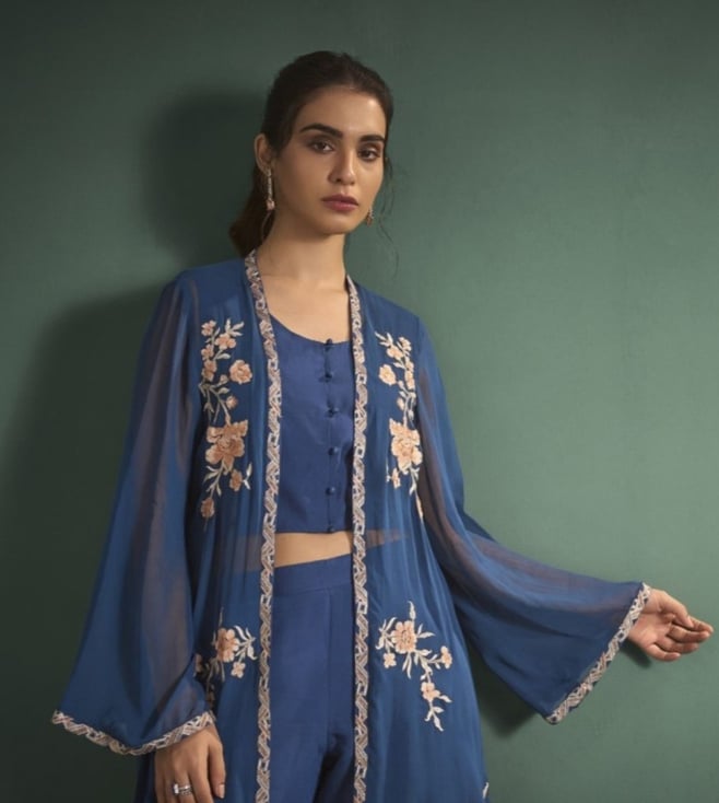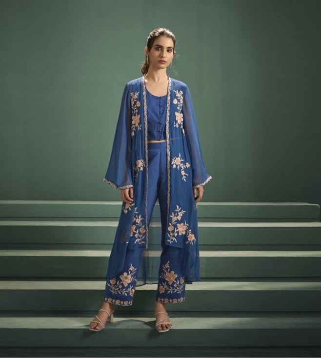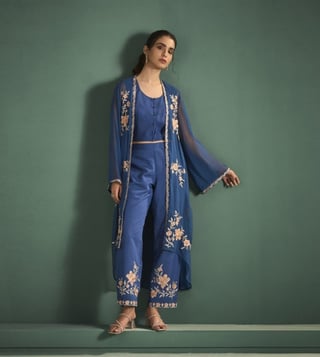 Blue Kimaya Hibis Embroidered Relaxed Fit Co-Ord Set