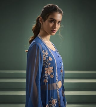 Elevate your style with the Autumnlane Blue Kimaya hibis Embroidered Relaxed Fit Co-ord Set. Embrace effortless elegance with this coordinating set featuring intricate hibiscus Embroidered and a relaxed fit silhouette. Perfect for any occasion, this set offers both comfort and style. Stand out from the crowd and make a statement with this chic ensemble. Upgrade your wardrobe with this versatile and trendy set that will take you from day to night with ease.