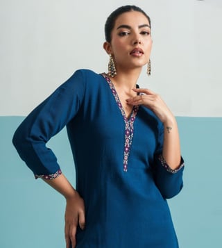 Elevate your wardrobe with the Autumnlane Blue Parikrama Azure Embroidered Relaxed Fit Co-ord Set. This stunning ensemble combines comfort and style effortlessly, featuring intricate Embroidered and a relaxed fit for all-day wear. Perfect for any occasion, this co-ord set exudes sophistication and elegance. Stand out in the crowd and make a statement with this versatile and chic outfit that will have heads turning wherever you go. Upgrade your fashion game with the Autumnlane Blue Parikrama Azure Embroidered Relaxed Fit Co-ord Set.