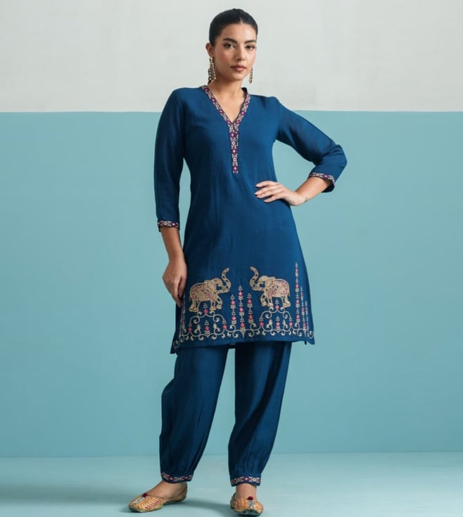 Blue Parikrama Azure Embroidered Relaxed Fit Co-Ord Set