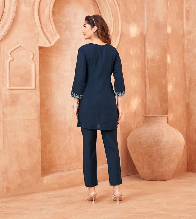 Autumnlane Blue Viscose Comfort Fit Embroidered Co-ord Set