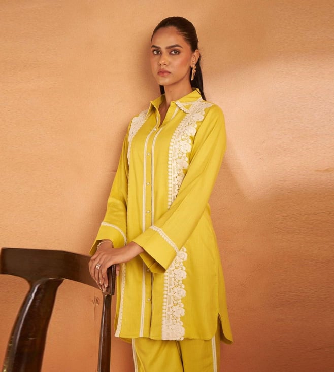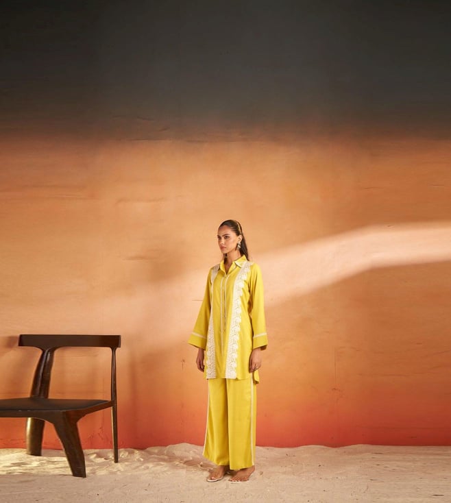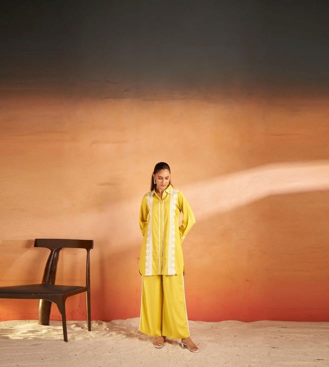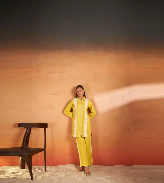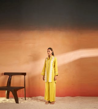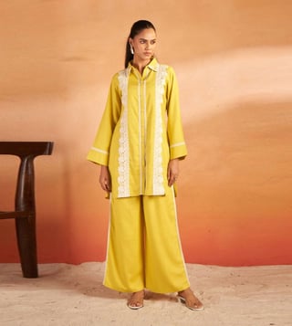 Autumnlane Canary Yellow Hardik Embroidered Regular Fit Co-Ord Set