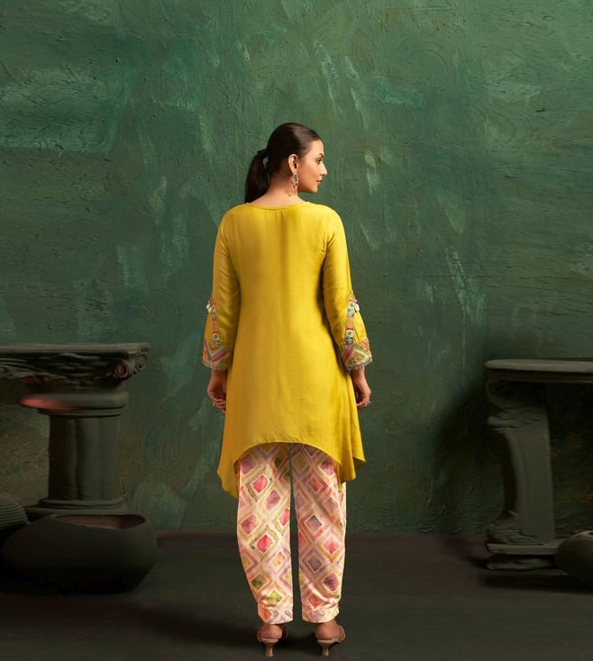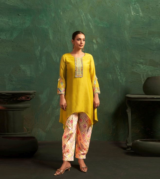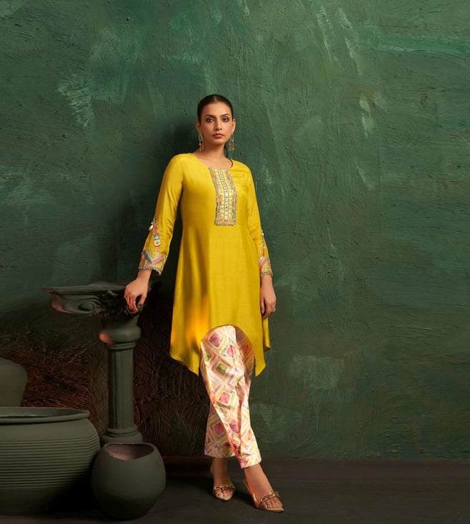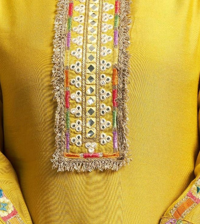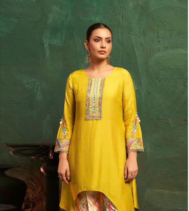Autumnlane Canary Yellow Ira Embroidered Regular Fit Fusion Wear Set