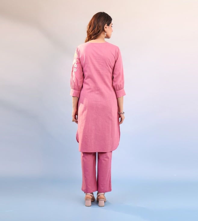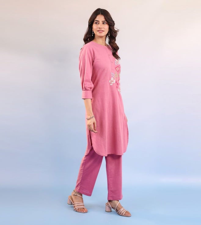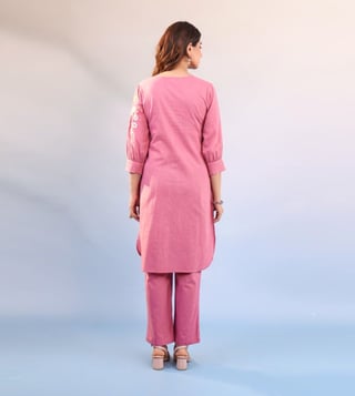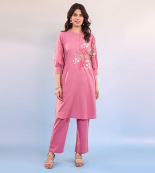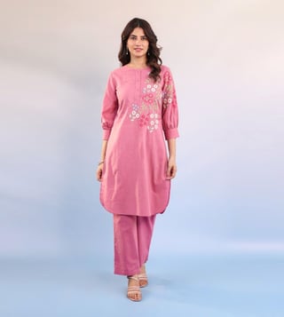 Elevate your style with our Autumnlane Candy Pink Raftar Embroidered Regular Fit Kurta Pant Set. This stunning co-ord set is designed for fashion-forward women who want to make a statement with their attire. Perfect for special events or everyday wear, this set brings sophistication and elegance to your wardrobe. Stand out in the crowd and exude confidence with this must-have addition to your collection.