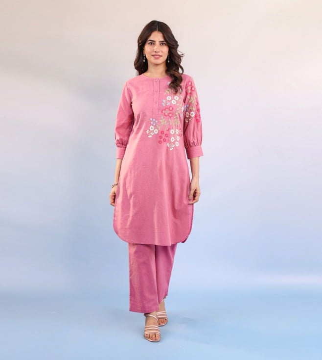 Candy Pink Raftar Embroidered Regular Fit Kurta Pant Set