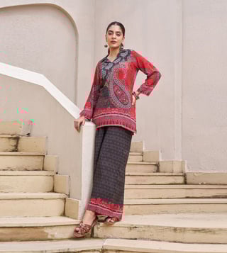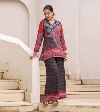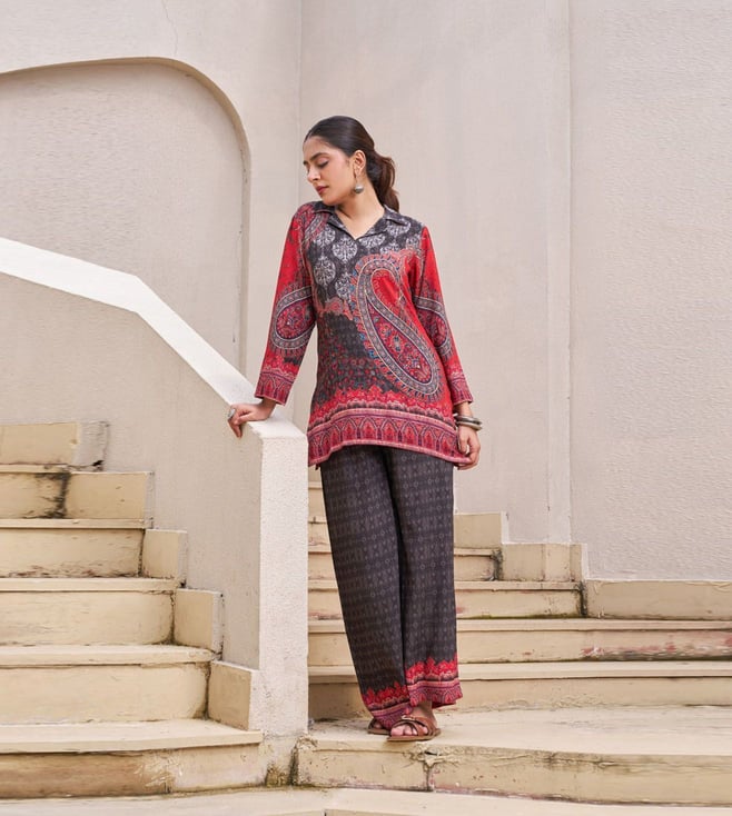 Elevate your style with our Autumnlane Charcoal Black Kabool Printed Regular Fit Co-Ord Set. This stunning collection of women's wear is designed to bring sophistication to your wardrobe, perfect for special events or everyday chic. Stand out with this fashion-forward choice that exudes elegance and confidence. Make a statement and elevate your look with this must-have co-ord set.