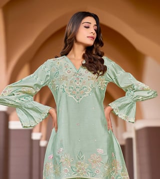 Elevate your style with our Autumnlane green ayat minty Embroidery comfortable fit co-ord set. This stunning ensemble features intricate embellishments and a minty green hue that exudes elegance and charm. The comfortable fit ensures all-day wearability, while the coordinating top and bottom make it easy to create a chic, put-together look. Perfect for any occasion, this set is sure to turn heads and leave a lasting impression. Upgrade your wardrobe with this must-have set today