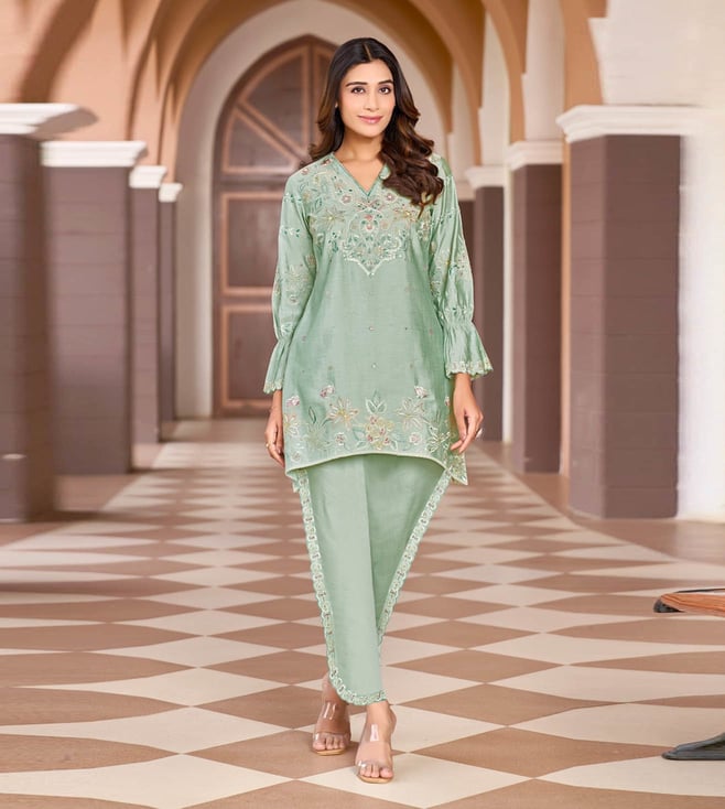Autumnlane Green Ayat Minty Embroidered Comfortable Fit Co-ord Set