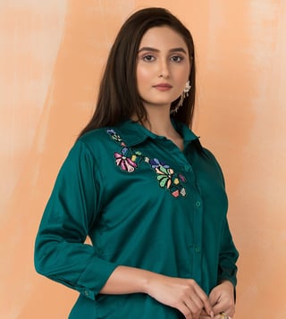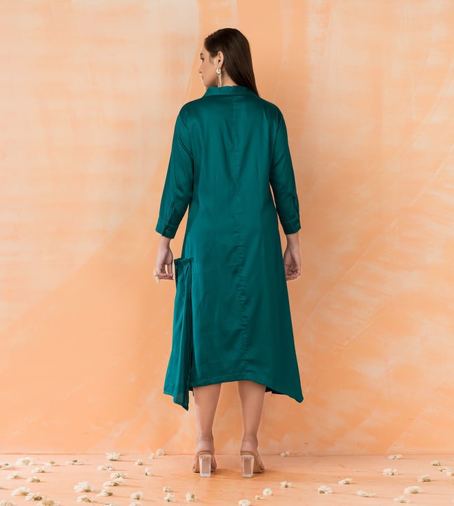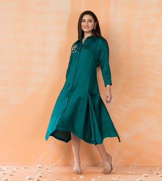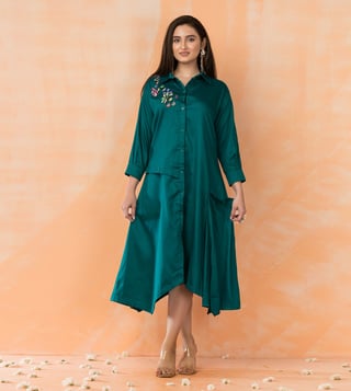 Autumnlane Green Cotton Comfort Fit Embroidery Dress