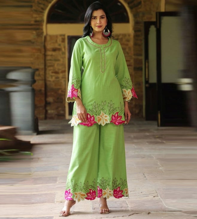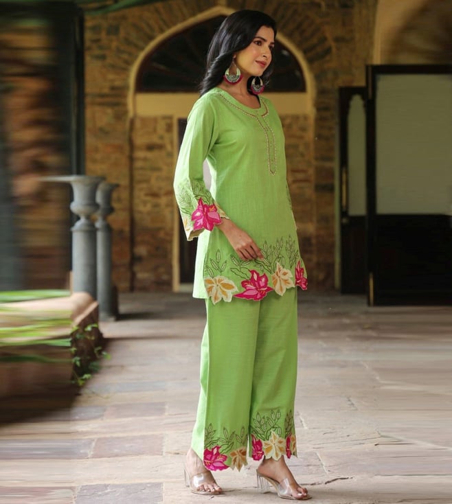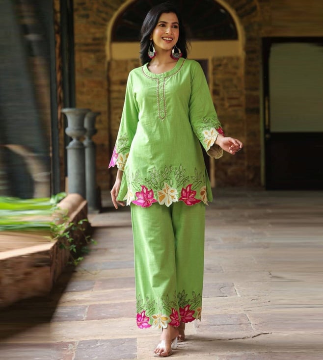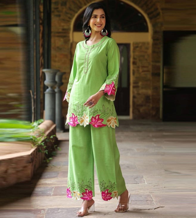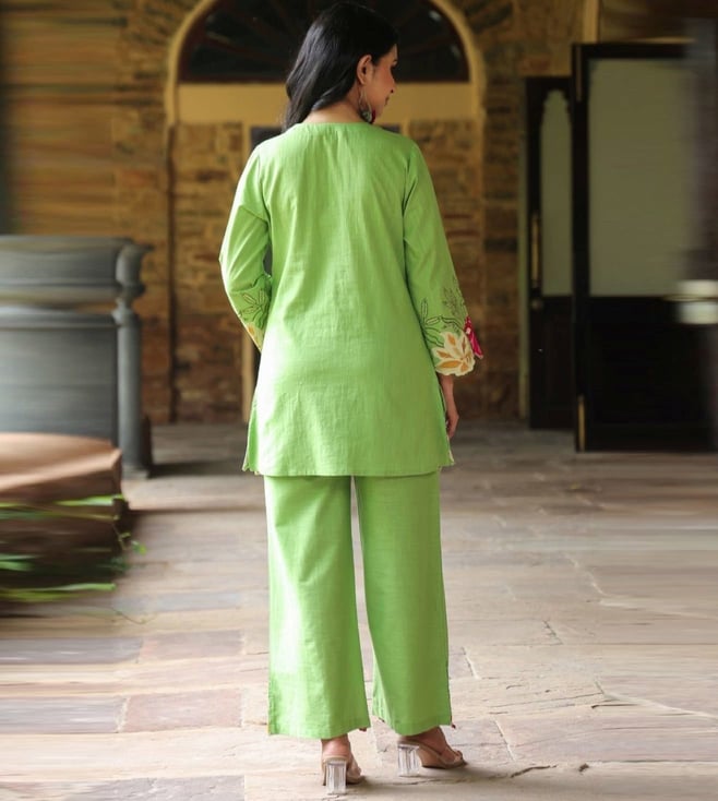 Green Mahuakelly Embroidered Relaxed Fit Co-Ord Set