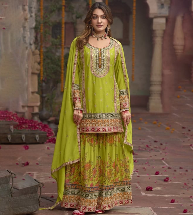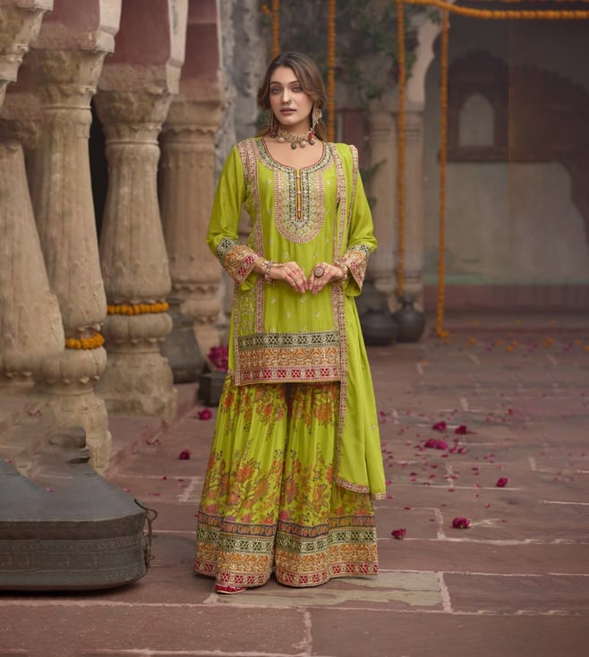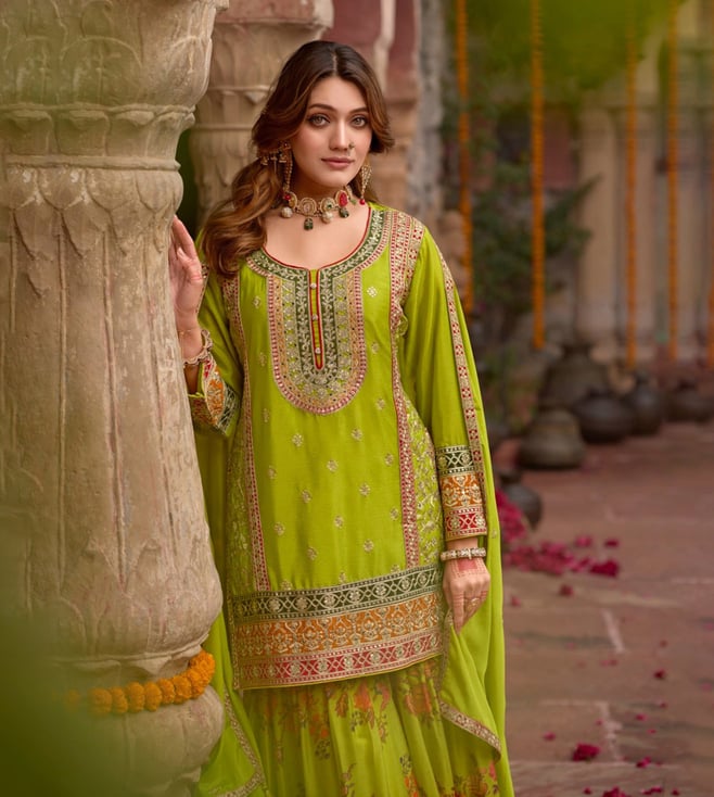 Green Sarang Full Work Heavy Work Premium Embellished Comfort Fit Suit Set