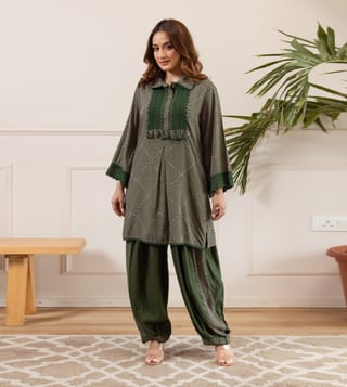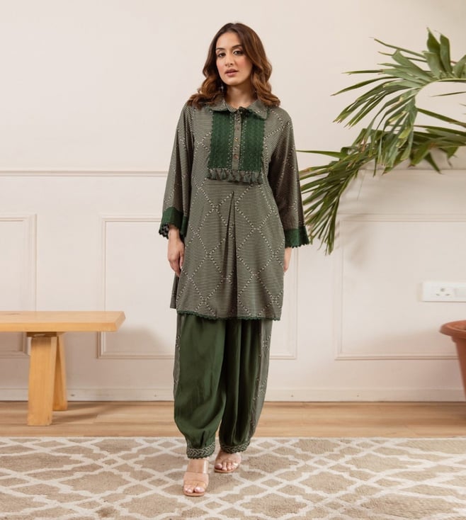 Autumnlane Green Stravi Pine Embroidered Relaxed Fit Co-Ord Set