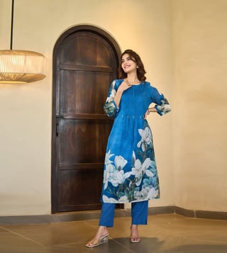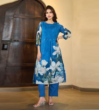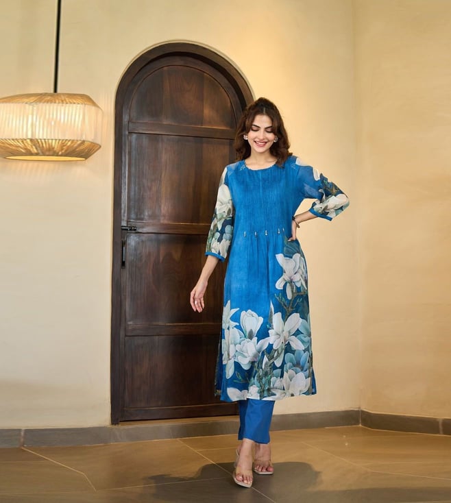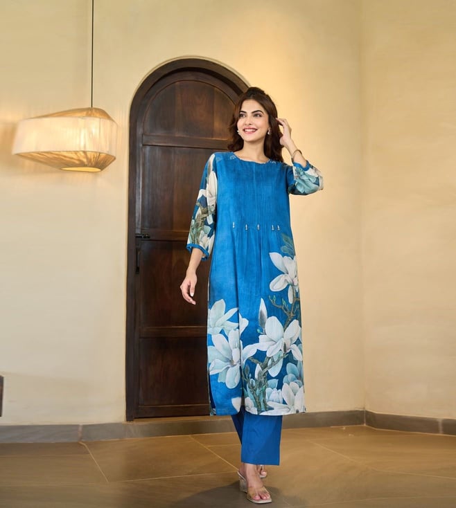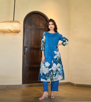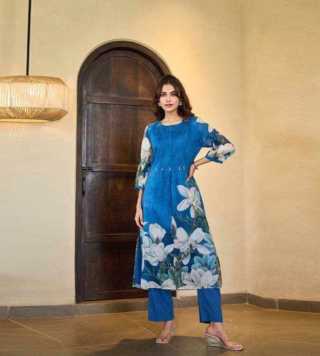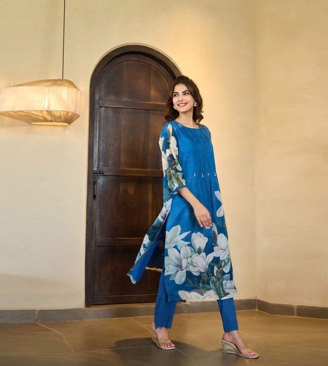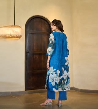 Autumnlane Hibis Blue Tiara Printed Regular Fit Kurta Pant Set