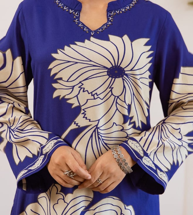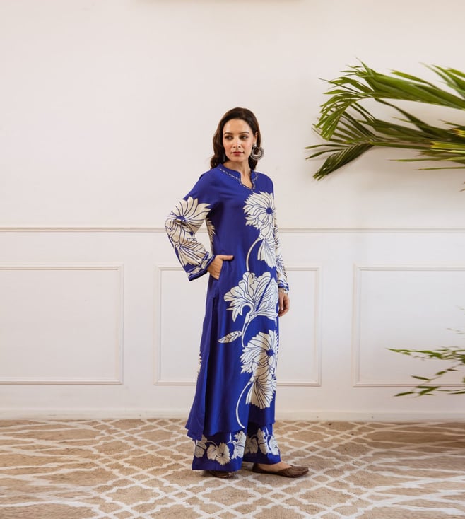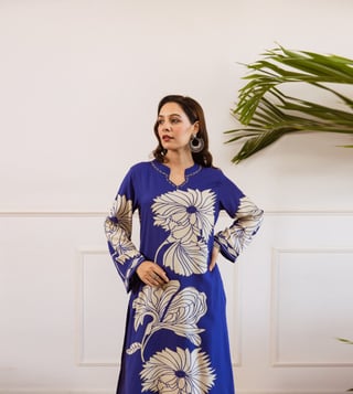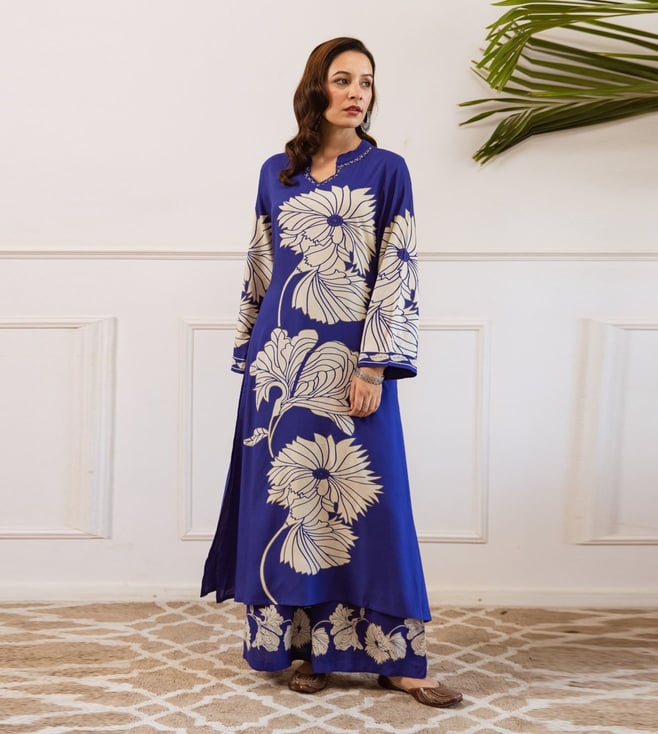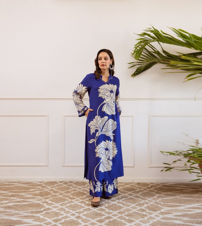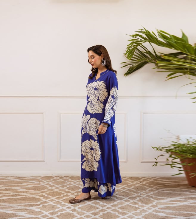 Autumnlane Indigo Bakul Spruce Floral Regular Fit Kurta Pant Set