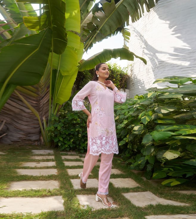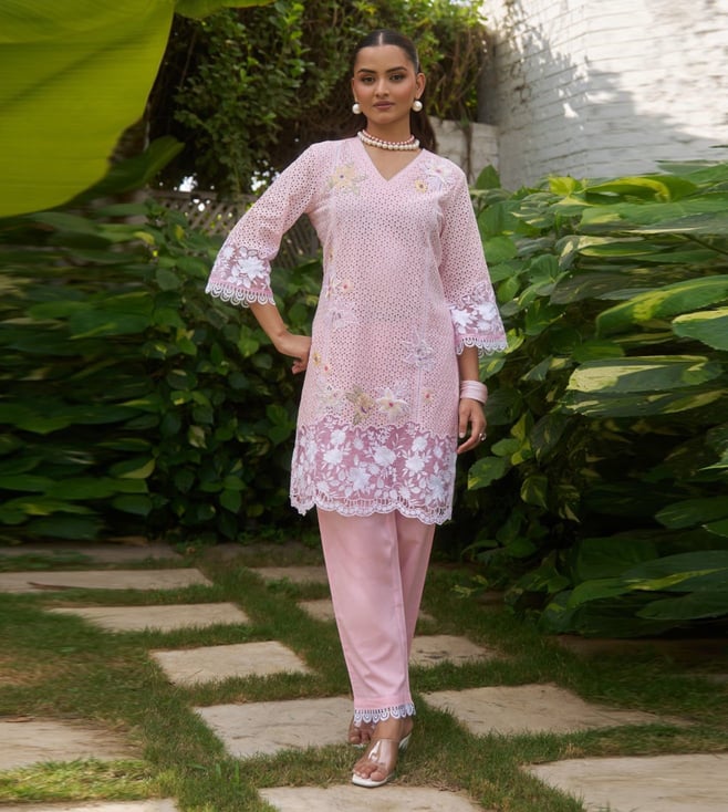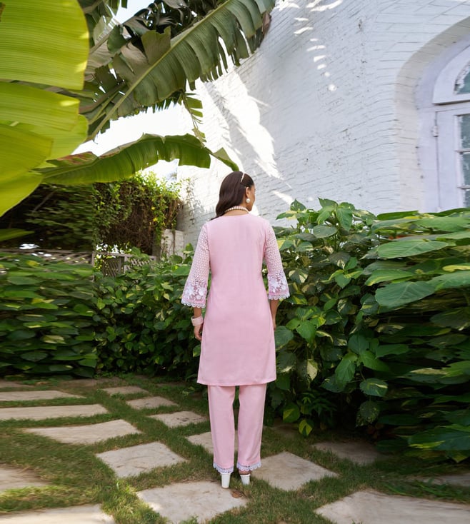 Autumnlane Lavender Anumeha Cerise Embroidered Regular Fit Co-Ord Set