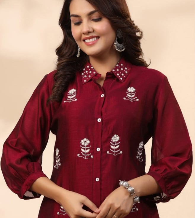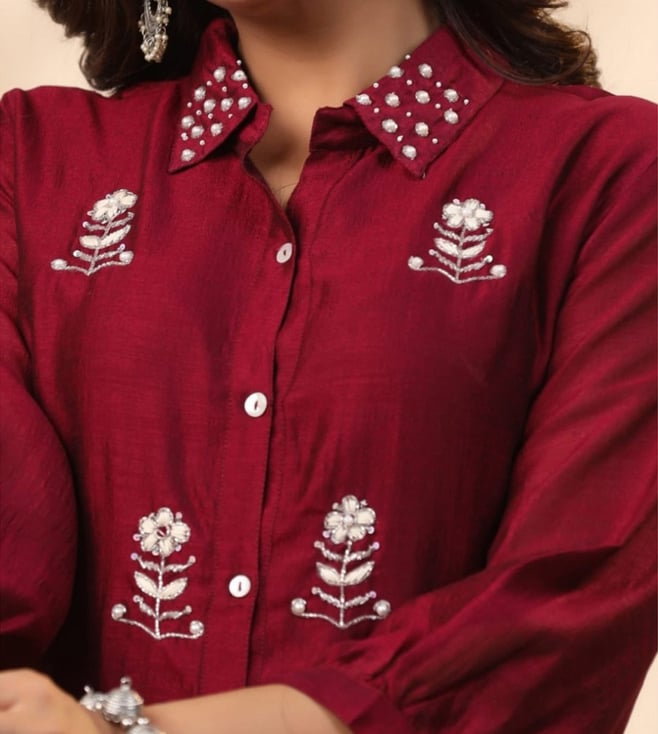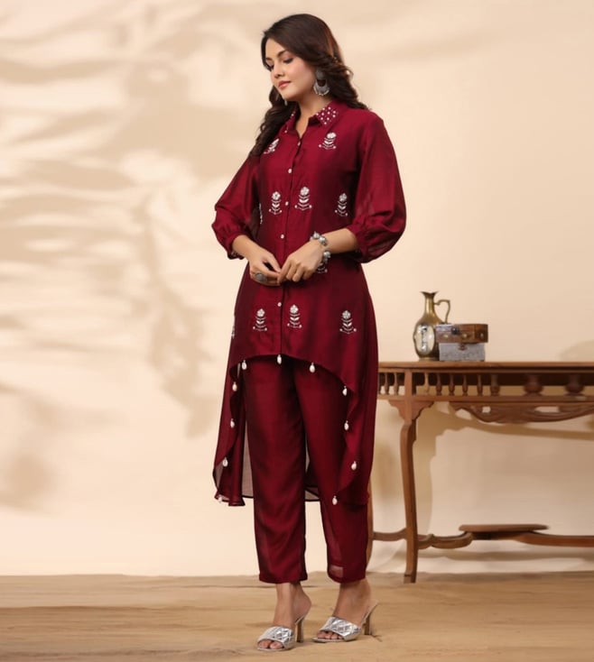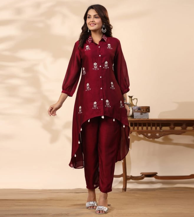 Autumnlane Maroon Sanmati Jam Embroidered Relaxed Fit Co-Ord Set