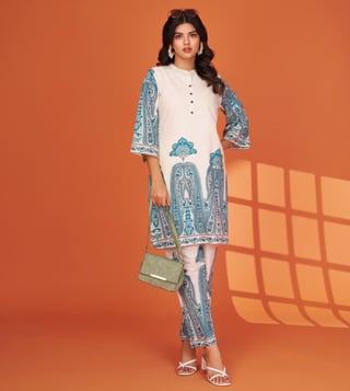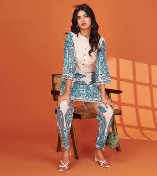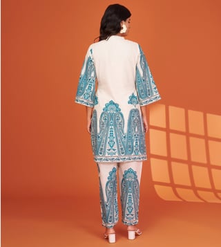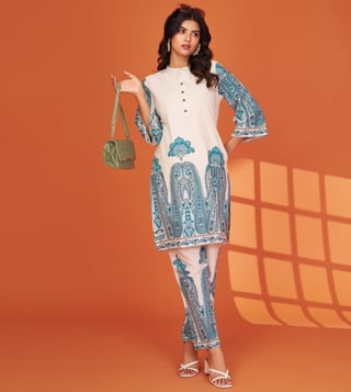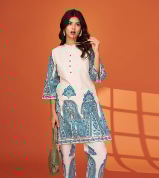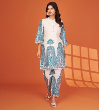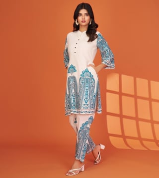 The Autumnlane Mauryahelium White Cotton Regular Fit Co-Ord Set This women's dress combines traditional fabric with vibrant colors for a unique style. Disclaimer: All other items in the image are only for display purposes and will not be a part of the delivery content. Product colour may slightly vary due to photographic lighting sources. Country of Origin - India.