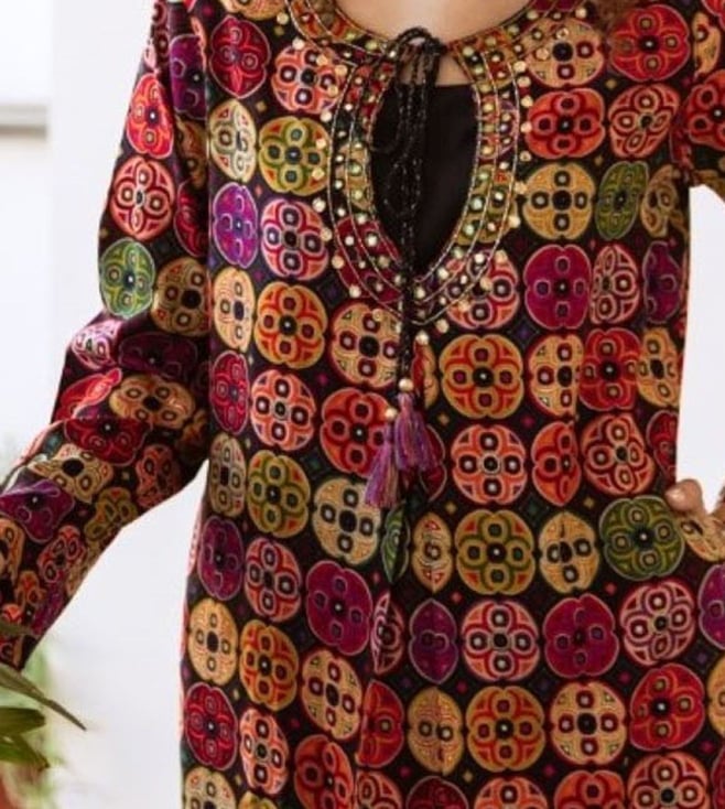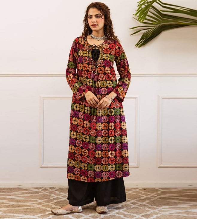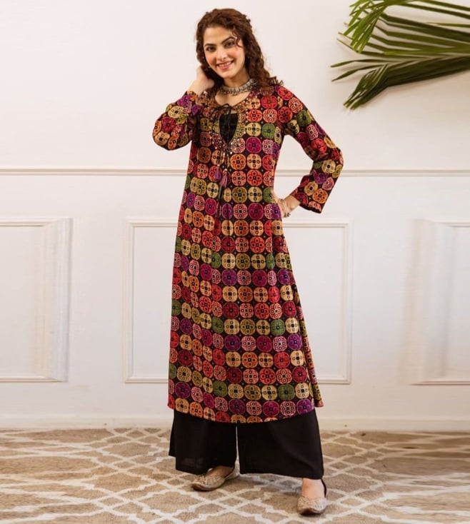 Elevate your style with our Autumnlane Multicolor Raven Sonpal Printed Regular Fit Kurta Pant Set. Designed for the fashion-forward woman, this stunning co-ord set brings sophistication to any occasion. Whether you are dressing up for a special event or looking to make a statement in your everyday wear, this set is the perfect choice. Stand out with the vibrant multicolor raven print and enjoy the comfort of the regular fit. Upgrade your wardrobe with this must-have ensemble that is sure to turn heads wherever you go.