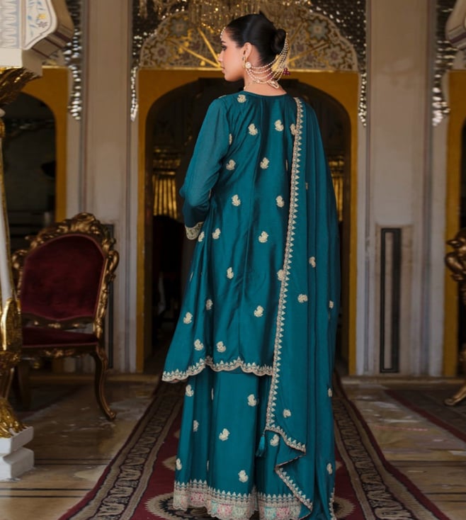 Autumnlane Navy Blue Kasumal Peacock Embroidered Relaxed Fit Gharara Set