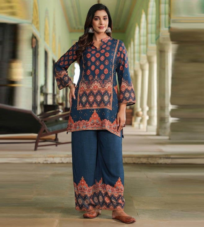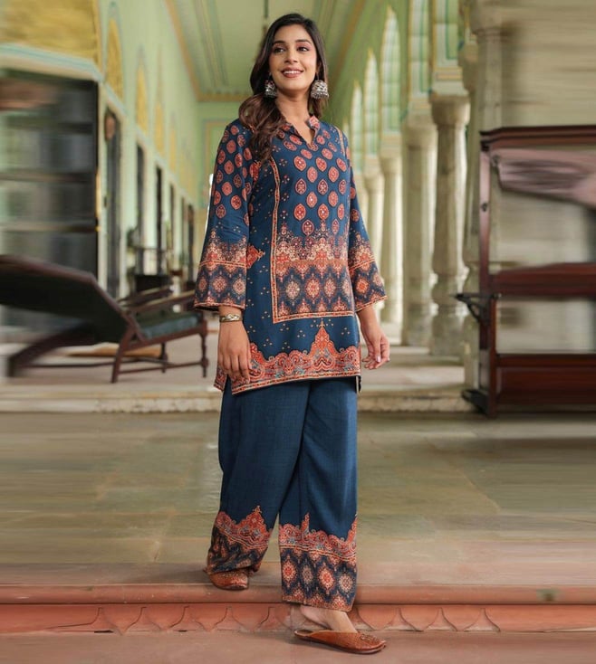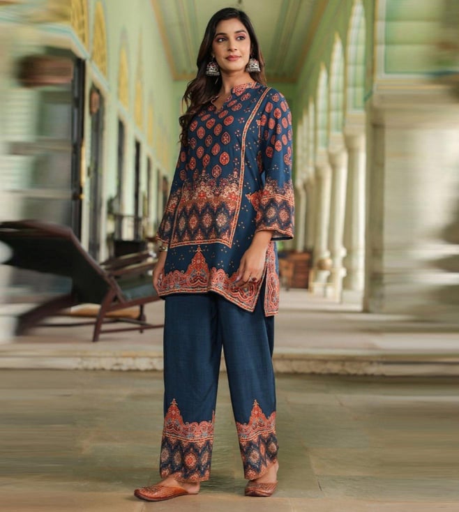 Navy Blue Mahuamidnight Printed Relaxed Fit Co-Ord Set