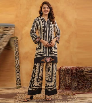 Elevate your style with our Autumnlane Off White Mahuamono Printed Relaxed Fit Co-Ord Set. This versatile set offers a chic and effortless look perfect for any occasion. The relaxed fit provides ultimate comfort while the unique Mahuamono print adds a touch of sophistication. Mix and match the pieces to create multiple stylish outfits. Embrace the season in style with this must-have co-ord set that is sure to turn heads.