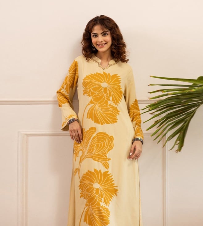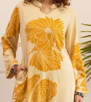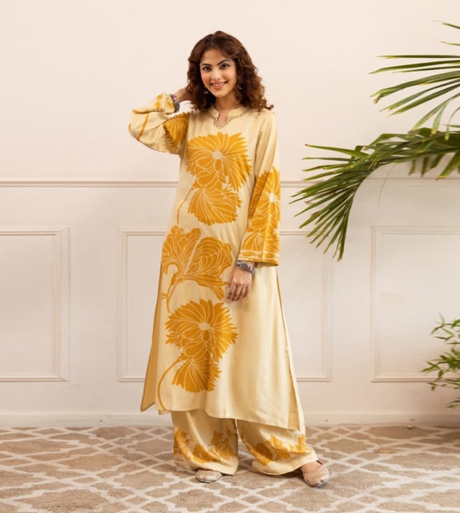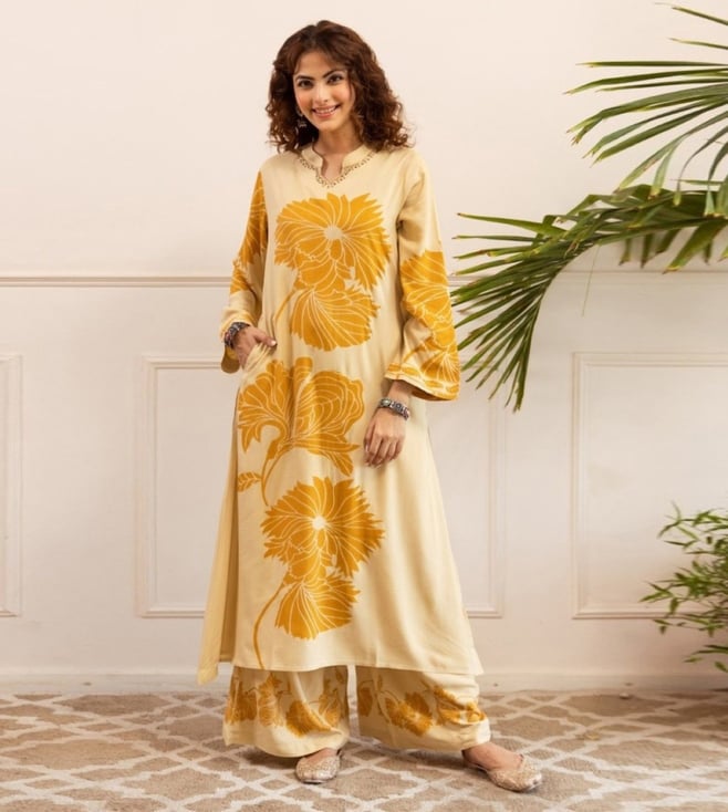 Elevate your style with Autumnlane Off white Sonpal corn Printed Relaxed Fit Kurta Pant Set. This stunning ensemble combines comfort and sophistication, featuring a relaxed fit kurta with a stylish printed design and matching pants. Perfect for any occasion, this set is crafted from high-quality fabric that drapes beautifully on the body. Embrace the effortless elegance of this versatile outfit that will keep you looking chic and feeling comfortable all day long. Upgrade your wardrobe with the Autumnlane Kurta Pant Set and make a statement wherever you go.