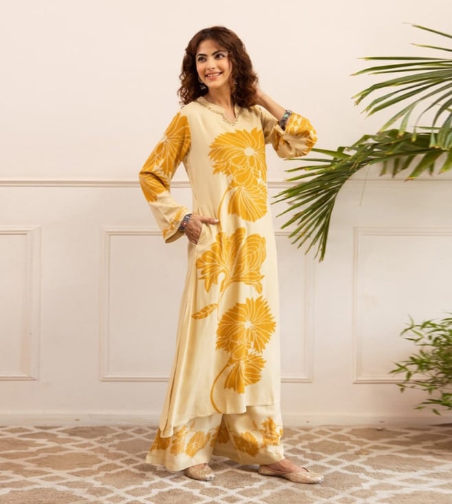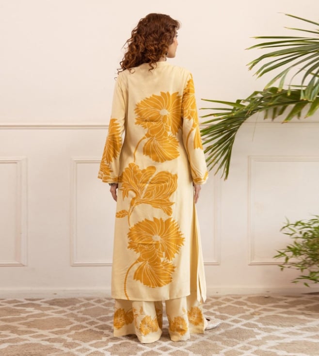 Off White Sonpal Corn Printed Relaxed Fit Kurta Pant Set