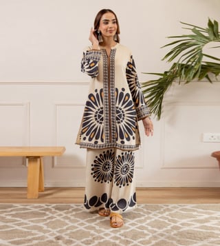 Elevate your fall wardrobe with the Autumnlane Off White Sonpal Frost Printed Relaxed Fit Co-ord Set. This stylish ensemble features a cozy, relaxed fit that effortlessly blends comfort and fashion. The off-white color and sonpal frost print add a touch of sophistication to your look, perfect for any autumn occasion. Whether you're heading to a casual brunch or a weekend getaway, this co-ord set is versatile and chic. Elevate your style game this season with this must-have outfit.